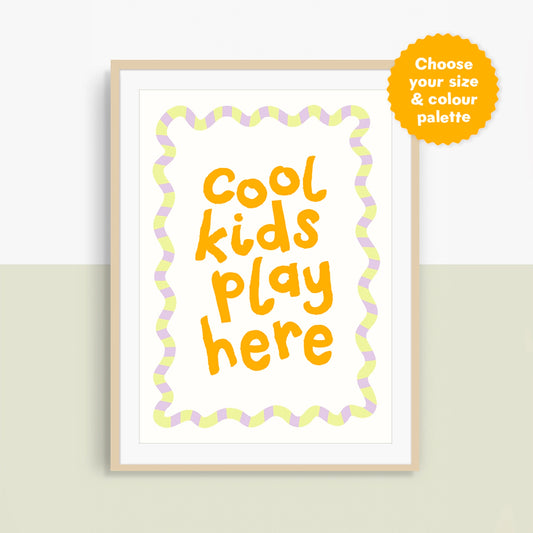 Cool Kids Play Here Personalised Print | Orange Lettering