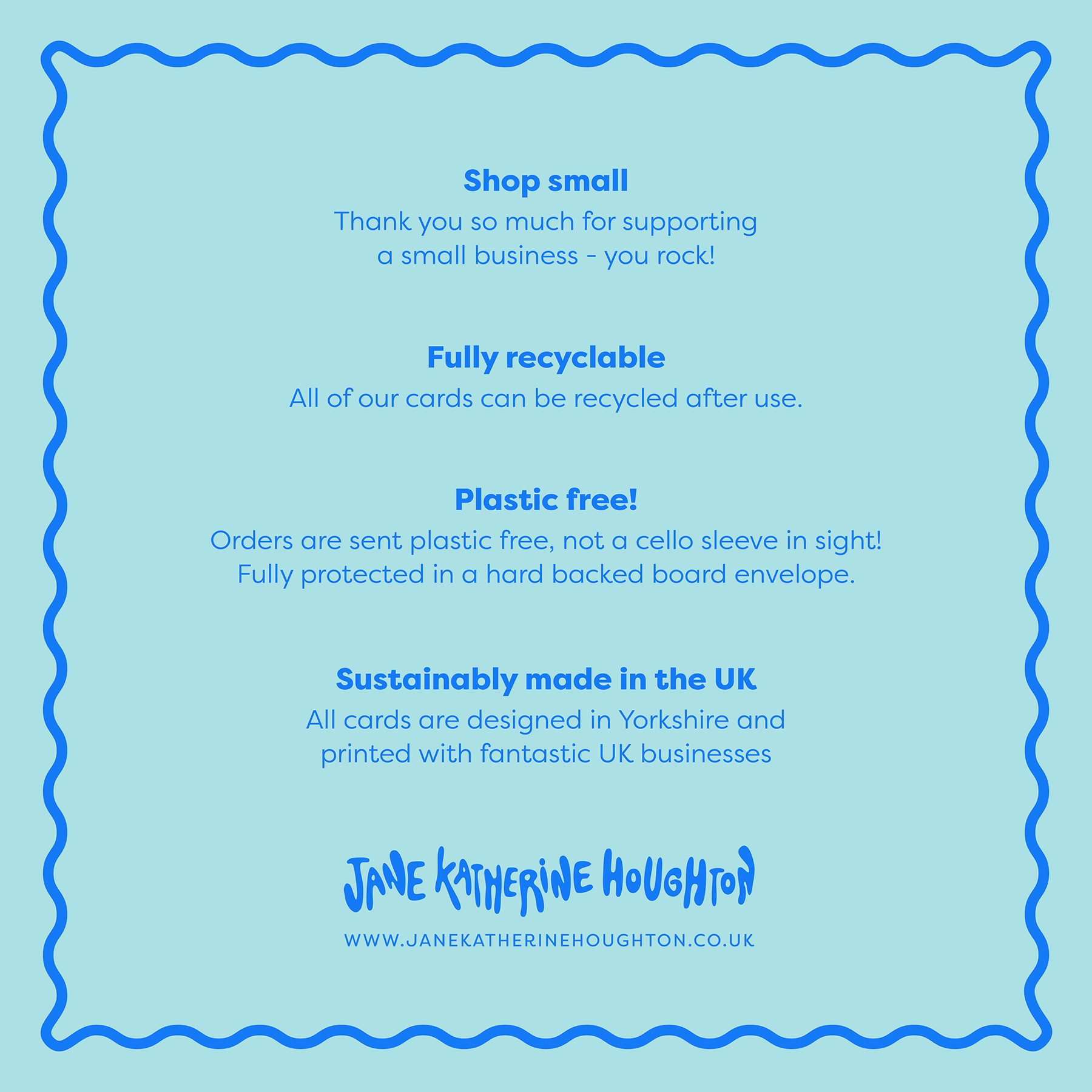 If you would like to send the card directly to the recipient, please add the message you would like writing inside the card in the personalisation box. We will hand write your message and send straight to them. Remember to add their name and delivery address at the checkout.