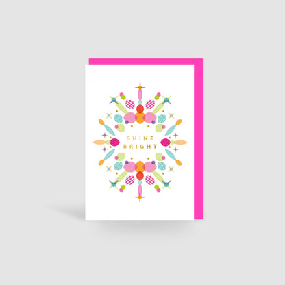 Send your very best wishes with these geometric cards, featuring symmetrical festive patterns and digitally gold foiled lettering