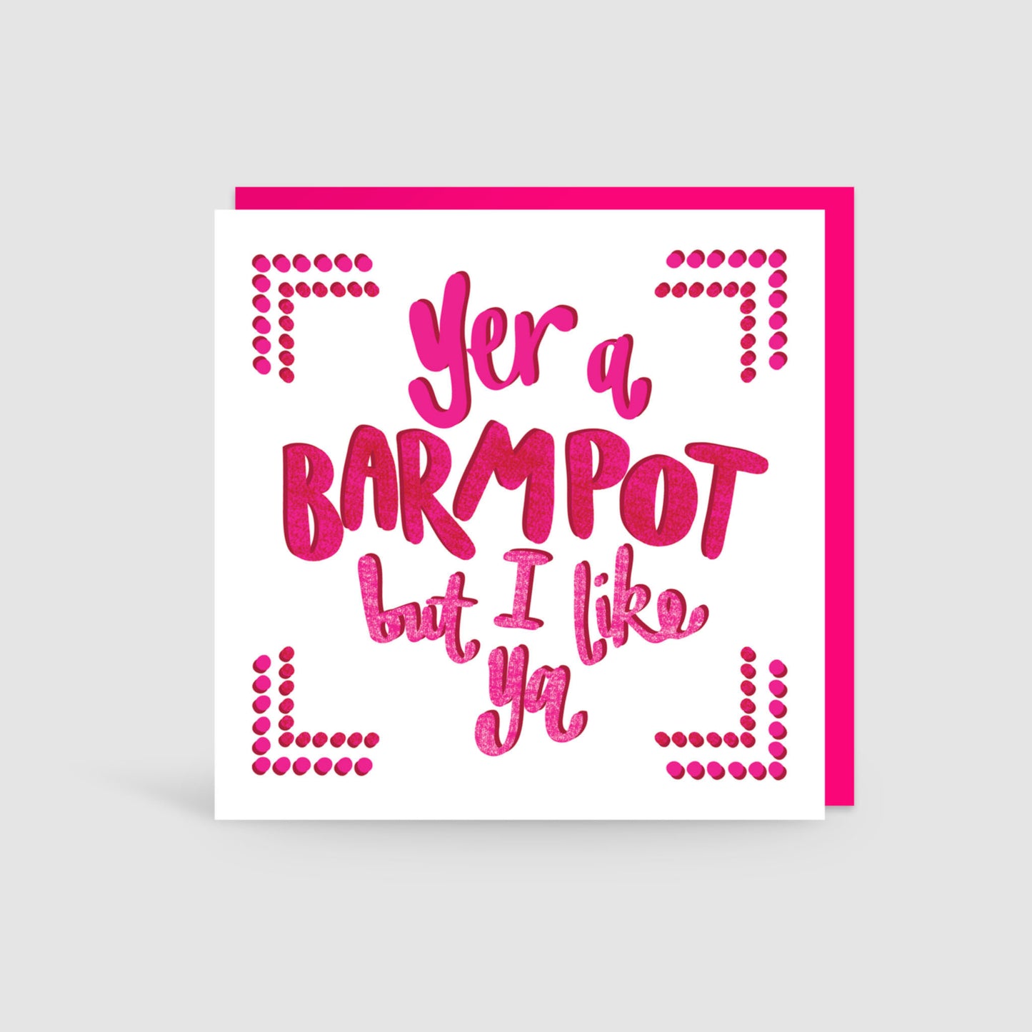 The 'Yer A Barmpot, But I Like Ya!' Yorkshire design is a great card for a range of occasions.