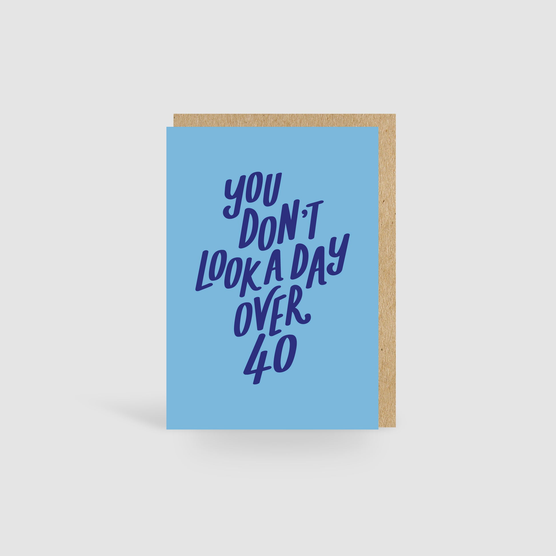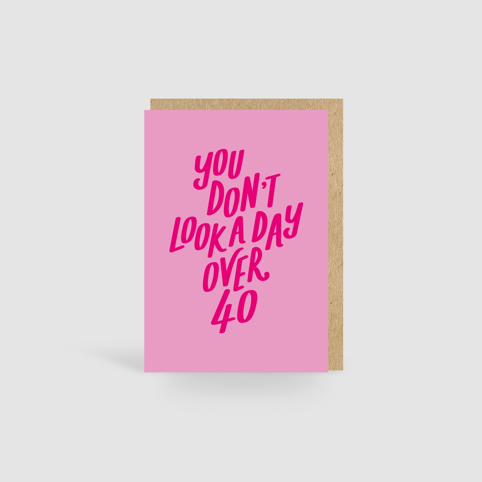 The colourful 'You Don't Look A Day Over 40' design features simple hand-drawn typography and a bright colour palette.